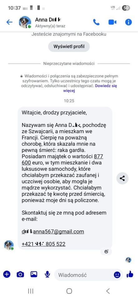 Świdniccy policjanci ostrzegają przed oszustami podszywającymi się pod ciężko chorych i oferującymi przekazanie majątku. Nie odpowiadaj, nie podawaj danych i nie wysyłaj pieniędzy, sprawdź jak rozpoznać i zgłosić podejrzane wiadomości.