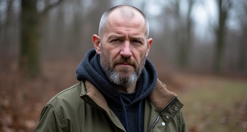 - Rysopis: 175 cm wzrostu, szczupła budowa ciała, łysy, broda, oczy niebieskie, liczne tatuaże na całym ciele