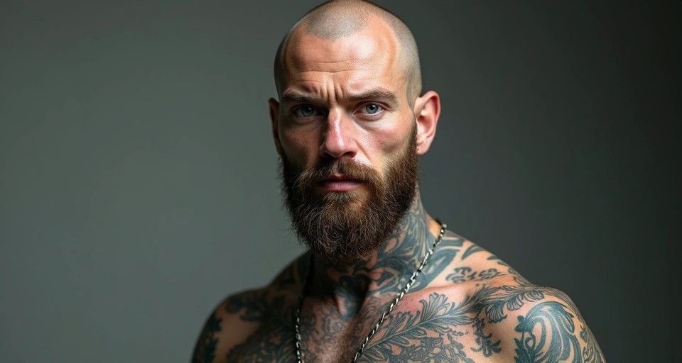 - Dodatkowe cechy: liczne tatuaże na całym ciele