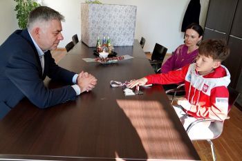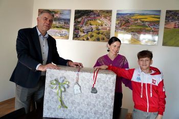 Jak mówiła Pani Anna Lenkiewicz, na co dzień mama i wierny mentor podczas zawodów i treningów, po ukończeniu szkoły podstawowej Hugo zamierza kontynuować naukę w międzynarodowym liceum we Wrocławiu, a w ciągu najbliższych miesięcy zdobyć mistrzowski tytuł i złoto w swojej kategorii wiekowej i wagowej.Podczas spotkania był czas na rozmowę o planach na przyszłość, tych sportowych i tych bardziej osobistych. Z pewnością będziemy chcieli przedstawić twoje osiągnięcia sportowe szerszemu gronu twoich rówieśników i uczniów w naszych szkołach – podkreślał wójt gminy Bartłomiej Strózik. Jesteś jednym z niewielu uczniów na Dolnym Śląsku, który został powołany do kadry narodowej i mimo młodego wieku już odnosi znaczące sukcesy. Kickboxing to szkoła życia w rękawicach, która uczy dyscypliny i samokontroli, szacunku dla siebie i przeciwnika, opanowania i wiary w sukces. A co najważniejsze, odciąga od komputera. Tego Ci gratuluję i mocno trzymam kciuki za kolejne sportowe sukcesy.